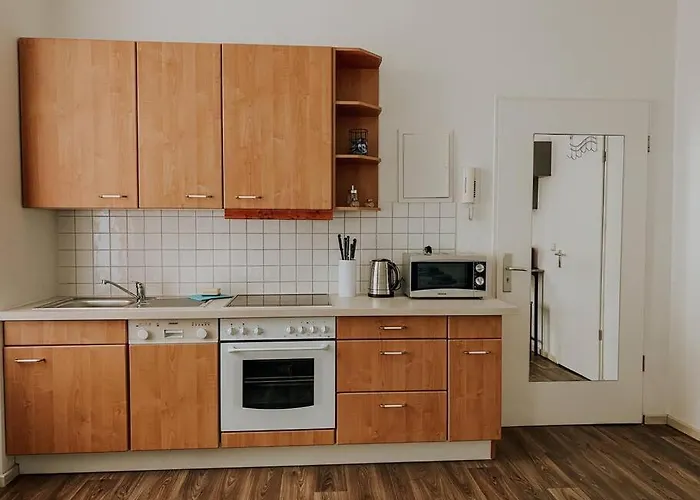 The 30 m^2 Unser Sonniges Apartment Mit Wlan, Netflix, Xbox Magdeburg overlooks the garden and is situated merely a 5-minute walk from Speicher GHI. Wi-Fi and parking are provided for guests' business or leisure needs.